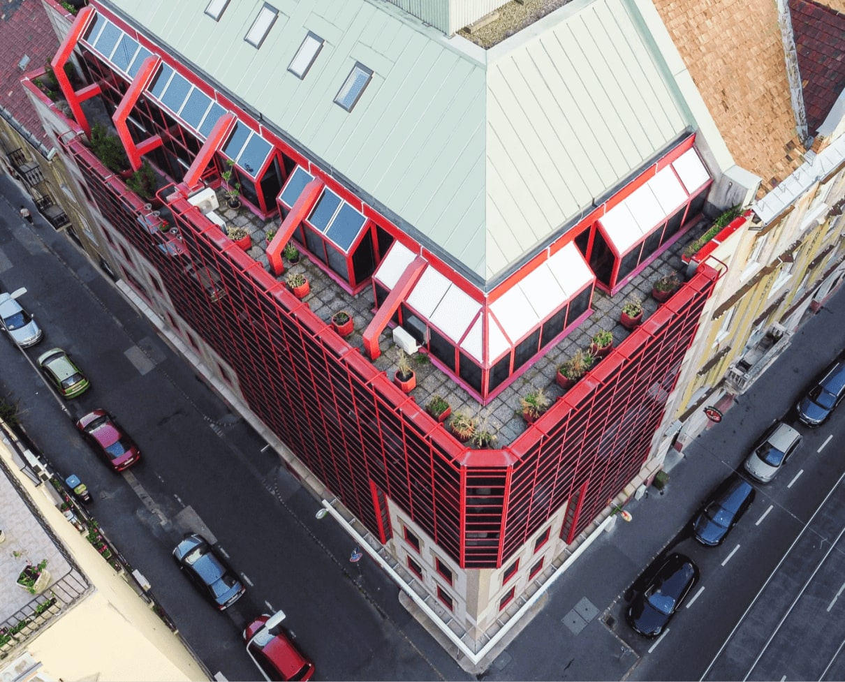Az irodák elhelyezkedése és tájolása a városi nyüzsgéshez közel, de csendes és harmonikus légkörben teremt ideális munkakörnyezetet bérlőiknek.